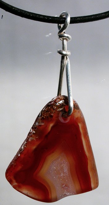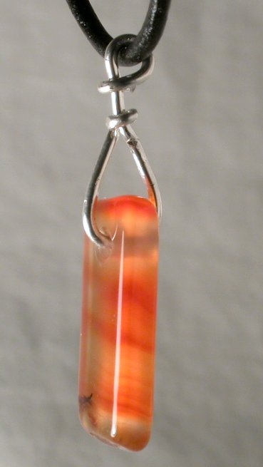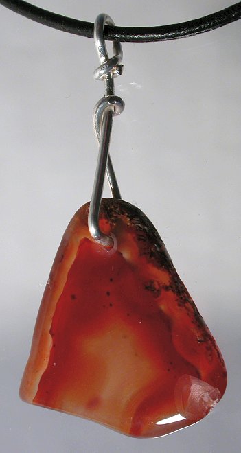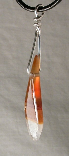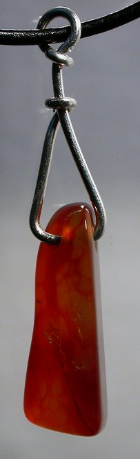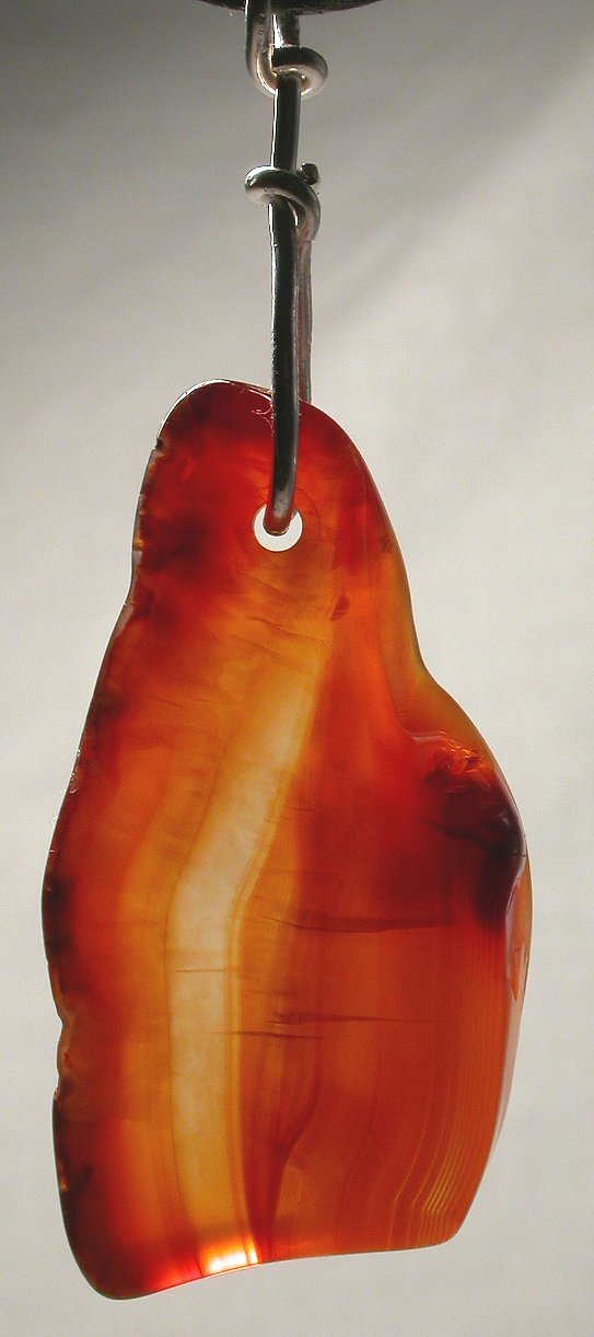 View 2 View 3 Carnelian smoke chalcedony agate pendant amazing natural reds and oranges sterling silver setting powerful shamanic energy adjustable leather necklace included 27 x 11 x 10 mm item # carnelpend7 $139.99 SOLD |