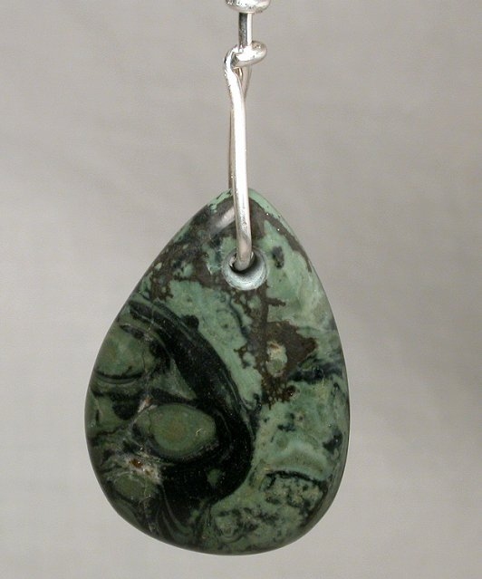 View 2 View 3 View 4 View 5 View 6 Willow Creek Jasper Talisman pendant designer focal point bead Rare and fabulous Powerful Shamanic healing energy hand carved by Mystic Merchant 50 x 30 x 5 mm (stone alone) sterling silver bail adjustable leather necklace included item # WillowCkTalisMo1 $333.99 |