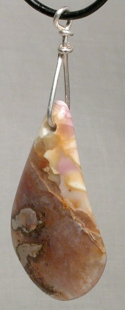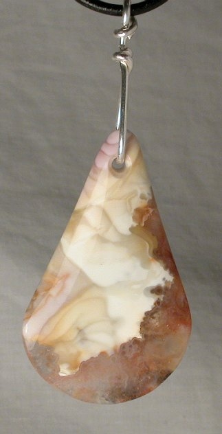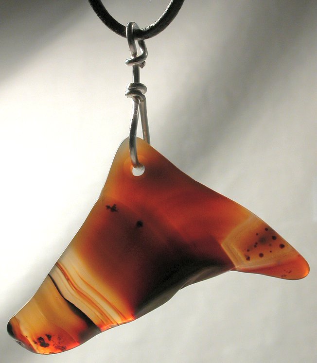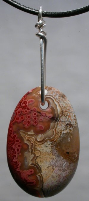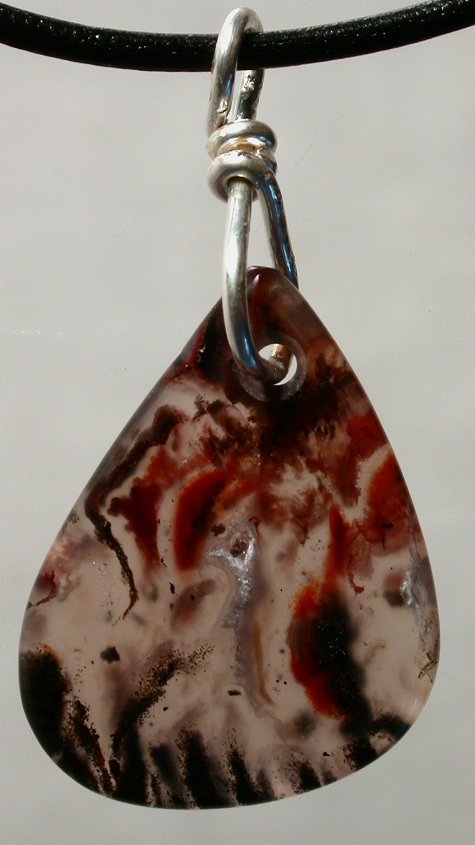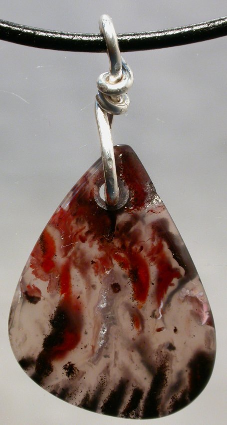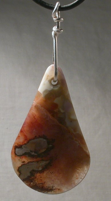 View 2 View 3 Montana Agate Carnelian chalcedony agate pendant amazing natural reds and oranges sterling silver setting shamanic heart energy adjustable leather necklace included 42 x 25 x 7 mm item # carnelpend4 $149.99 SOLD |
