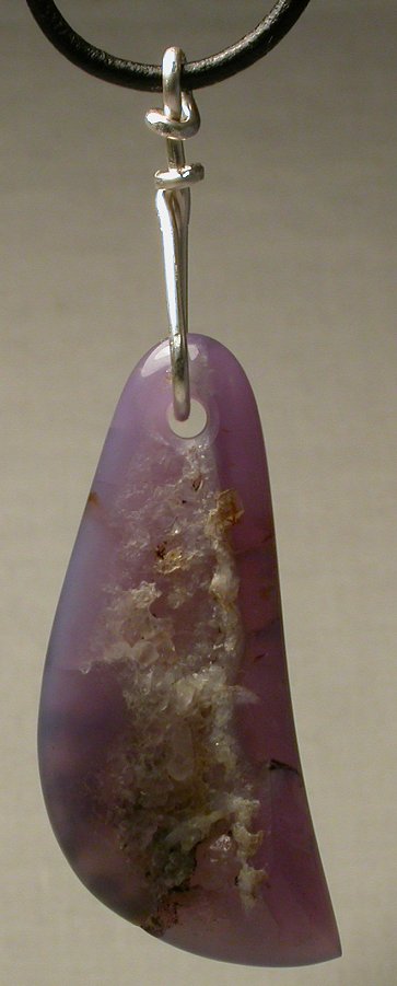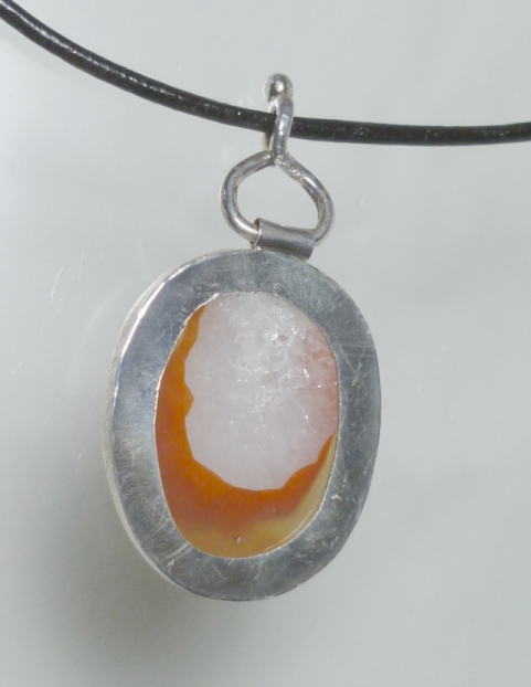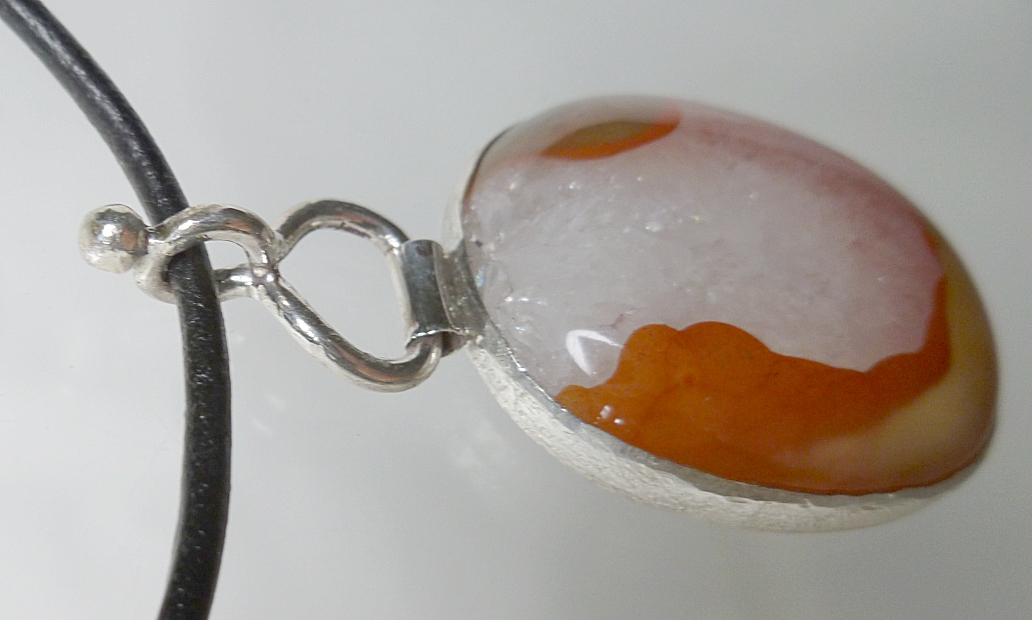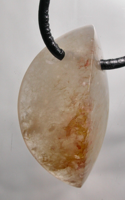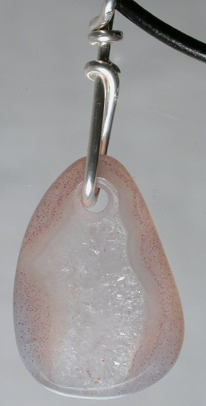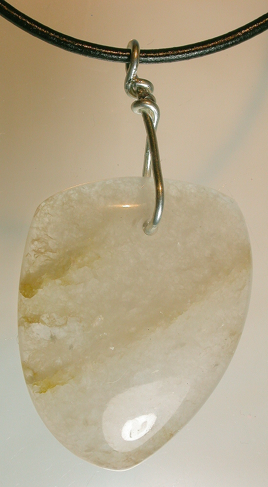 View 2 Silver in quartz agate Talisman/ pendant designer focal bead Shamanic healing energies 2nd chakra healing sterling silver bail adjustable leather necklace included 29 x 20 x 5 mm (stone alone) item # silvqtztalis2 $129.99 SOLD |