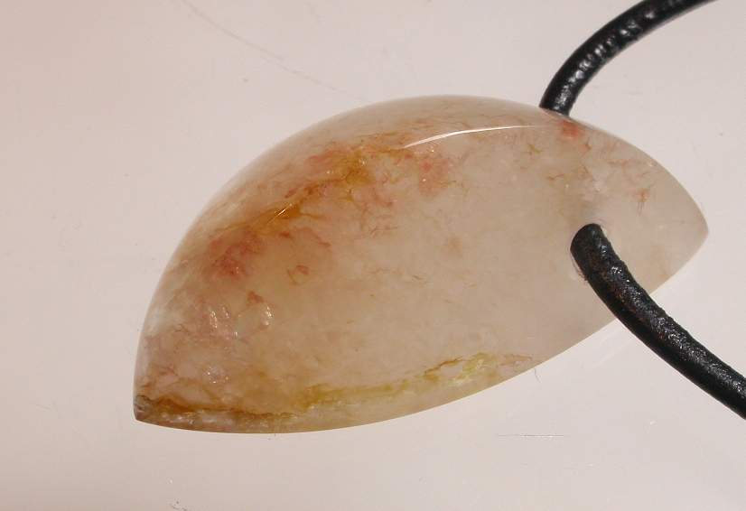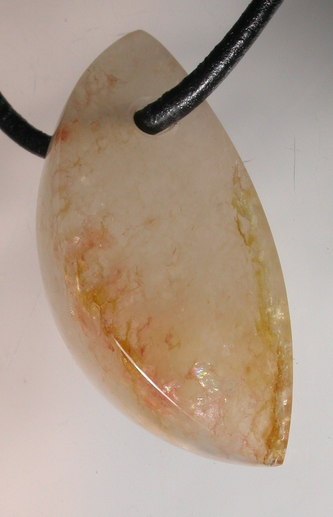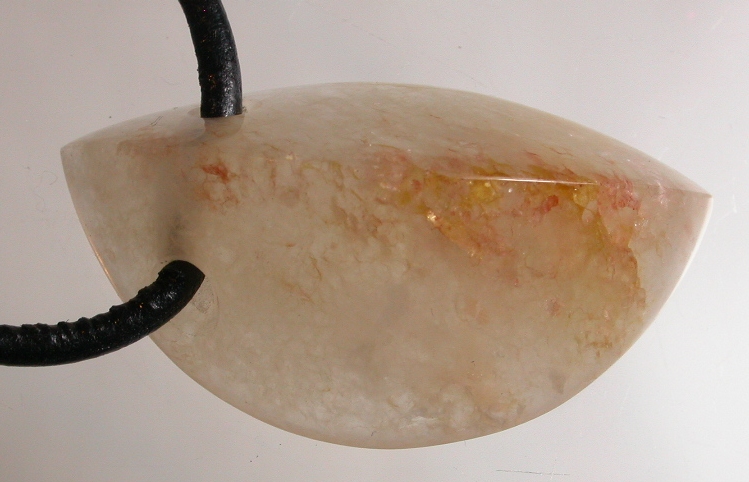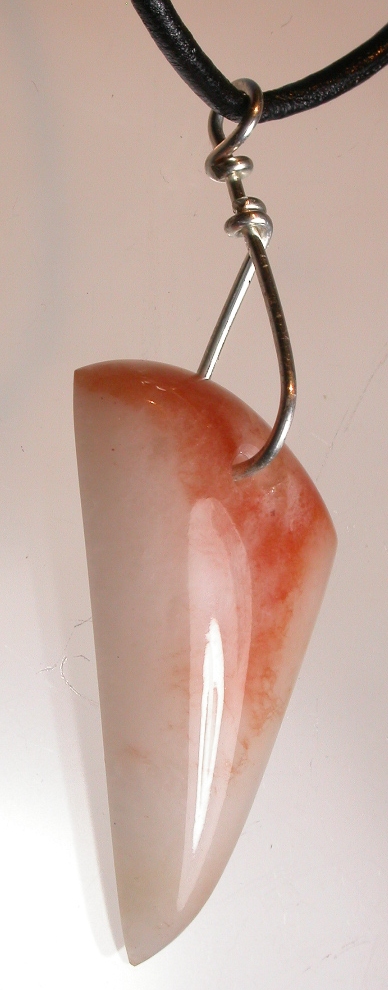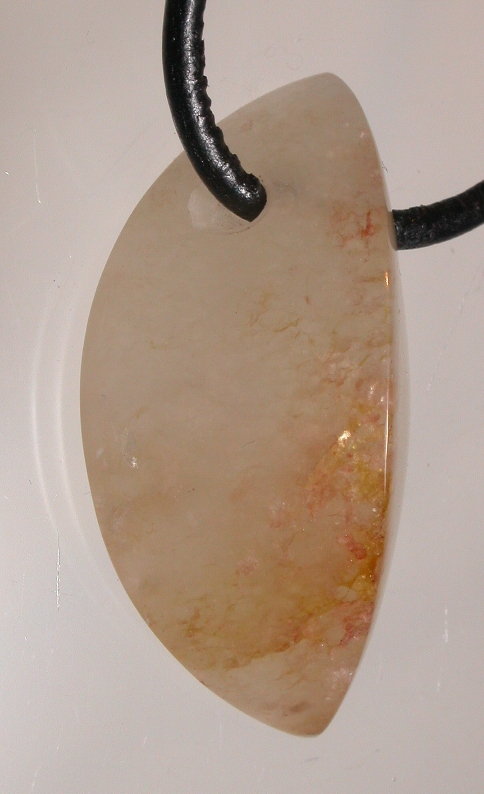 View 2 View 3 Freeform talisman pendant jewelry hand carved by Billy Mason iron stained milky quartz beauty mined in Chatham County NC gemstones powerful Shamanic healing meditation Much sought after in Europe for its blissful sweetness "Wear a piece of the Piedmont" sterling silver bail adjustable leather necklace included 41 x 21 x 4 mm item # chathamorthotalis101 $333.99 |