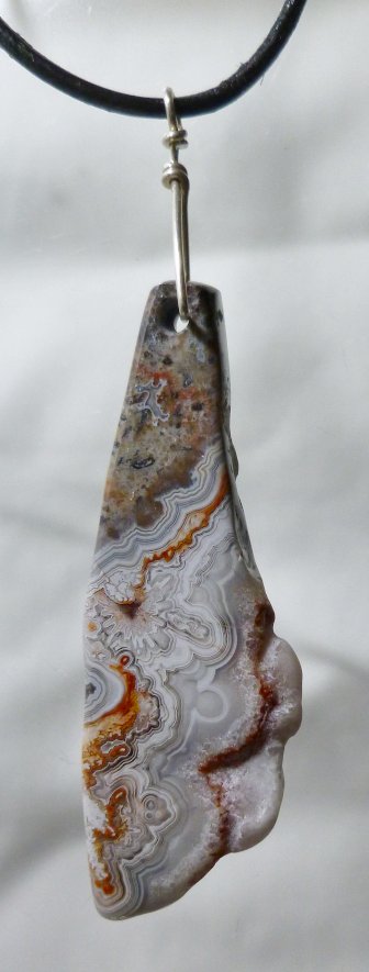 View 2 View 3 Crazy Lace agate pendant focal point bead Shamanic power key healing meditation energy sterling silver bail adjustable leather necklace included 38 x 24 x 5 mm (stone alone) $179.99 SOLD item # crazylacagpend1 |