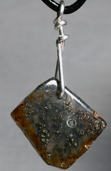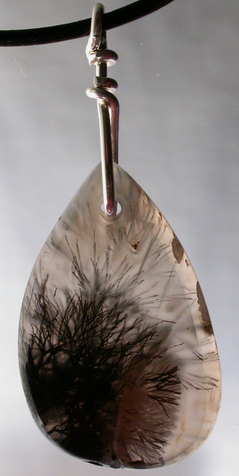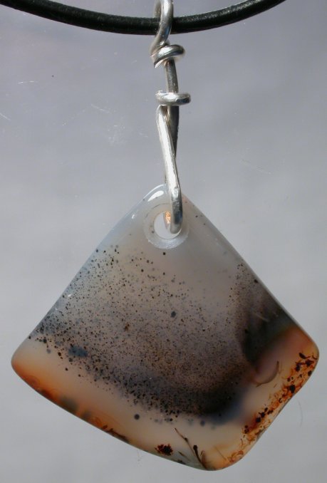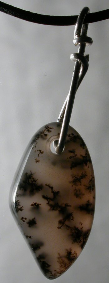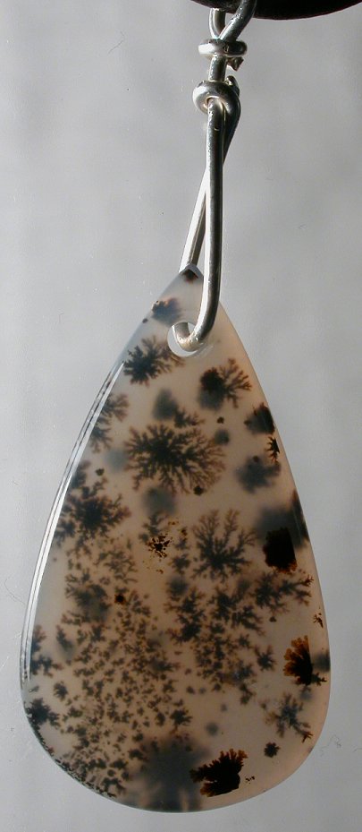 View 2 View 3 Dendritic Montana agate pendant focal point bead incredible Shamanic power healing meditation energetics sterling silver bail adjustable leather necklace included 31 x 17 x 7 mm (stone alone) $139.99 SOLD item # dendagpend2 |