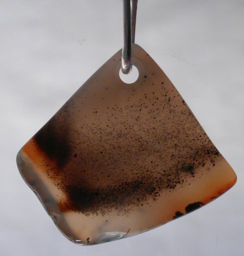 View 2 View 3 Amazing Dendritic Montanta agate pendant Santa Fe desert sunset sand storm in stone focal point bead Unbelievable Shamanic energy healing meditation tool sterling silver bail adjustable leather necklace included 31 x 30 x 4 mm (stone alone) $233.99 item # dendagpend3 |