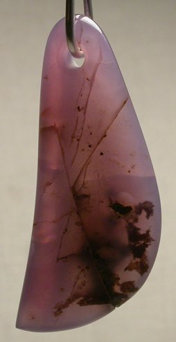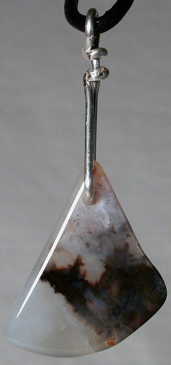 View 2 Mount Rainier plume agate Talisman/ pendant designer focal bead Shamanic healing energies 3rd chakra energizer sterling silver bail adjustable leather necklace included 47 x 18 x 5 mm (stone alone) item # mtraintalis1 $133.99 |