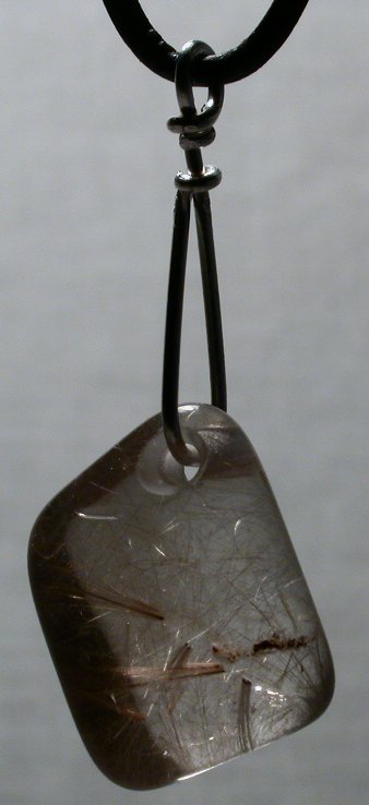 View 2 Rutillated quartz Talisman/ pendant designer focal bead Sweet Shamanic energy 6th chakra energies sterling silver bail adjustable leather necklace included 29 x 15 x 10 mm (stone alone) item # rutilqrtz101 $119.99 |