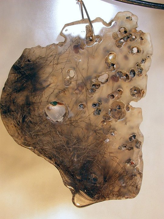 ![]() Shamanic Sagnite Bloom pendant Phenomenal saginitic dendrites in quartz adjustable leather necklace included sterling silver 63 x 50 x 5 mm $227.99 item #BF-jg3 |